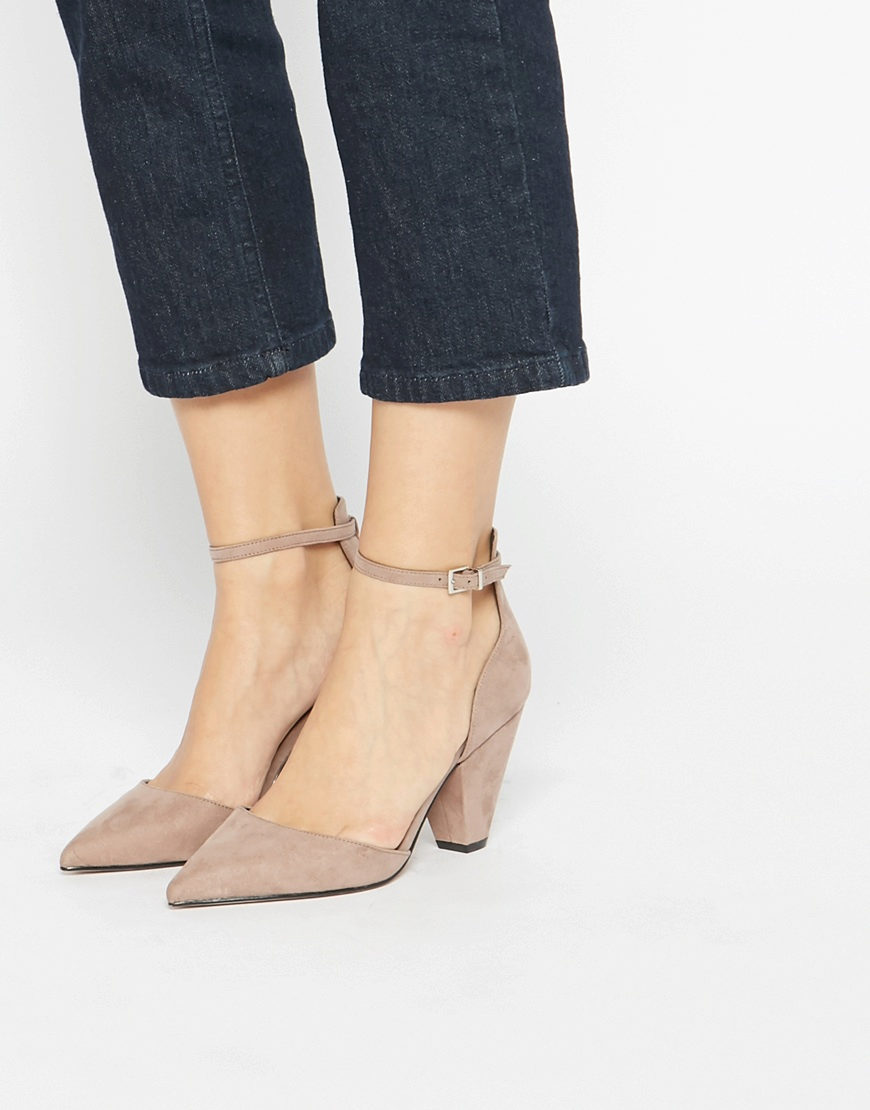 Suede shoes in beige or flesh-colored will look just wonderful, and the strap in this case will only gently accentuate the curve of the leg.