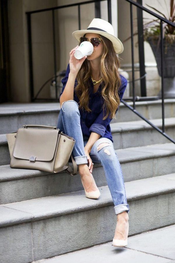 - Brown shoes will easily fit into a casual look. They can be combined with jeans, jumper and blazer or leather jacket.