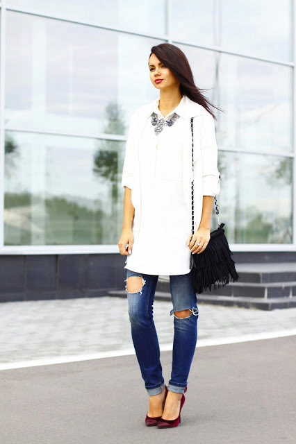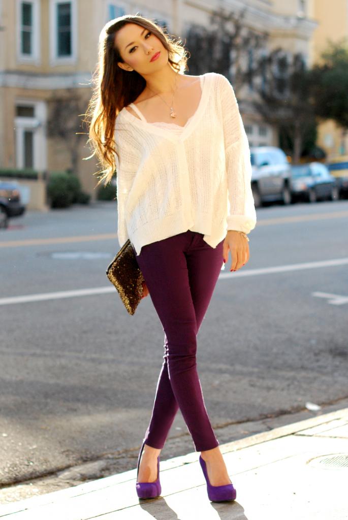 To work, wear suede shoes in a company with a sleek case-dress or skinny pants. You can complement the image with a knitted jumper or cardigan to emphasize the "comfort" of suede material.In this case, shoes should be a quiet shade, which is well written in a business dress code.