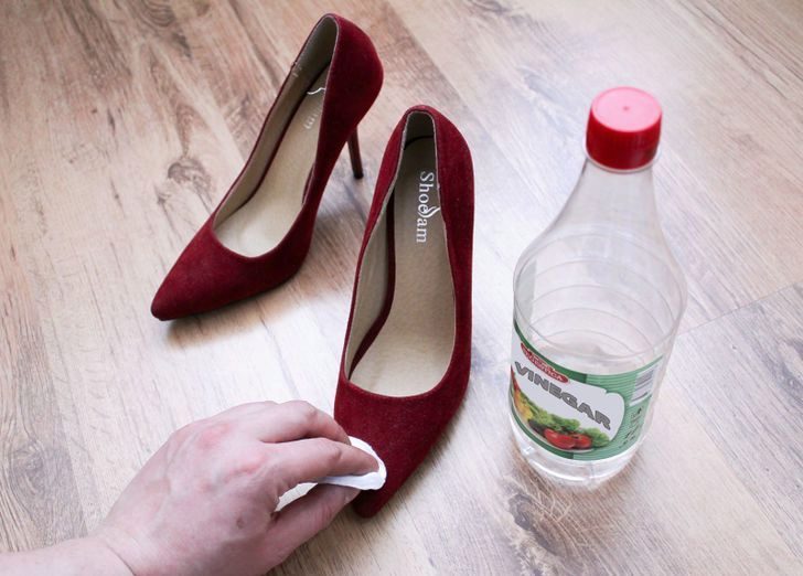 - If there is a greasy stain on suede shoes, you can remove it with a special suede shampoo. Some advise using vinegar for this purpose if there is no professional remedy at hand.