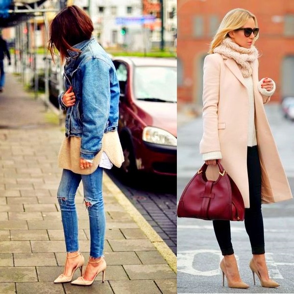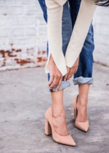 - Beige shoes. Such shoes are ideal for a day toilet. Body color visually lengthens the legs and makes them slimmer. Perfectly combined with light clothing.
