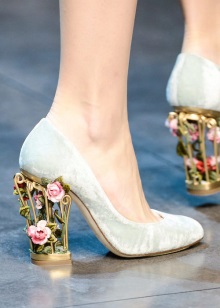 Does not lose its relevance and velvet. Now this material can be used not only for finishing. Such shoes are particularly attractive in combination with an unusual shape heel.