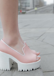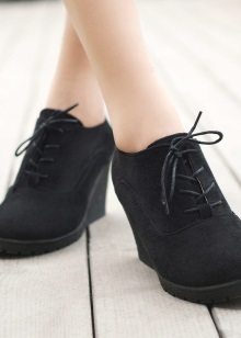 Looks great on legs and shoes on the platform or wedges. In such shoes, the stress on the foot is minimal, so you can go through them even a whole day. Now the most popular model acquired on a high platform. A slightly rough sole may be an interesting addition to the bow.