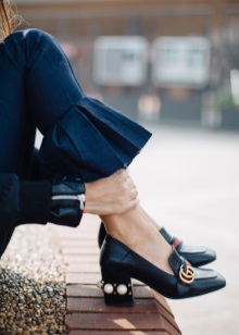 The most practical and unpretentious option - autumn shoes with a wide heel. They often have buckles or bows, which only adds spice to the image.