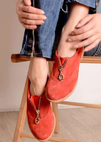 Also beautiful, but inconvenient velor - putting on similar shoes in the damp, you risk hopelessly spoil it.