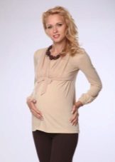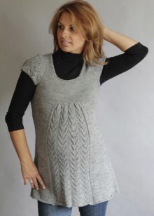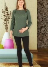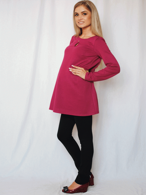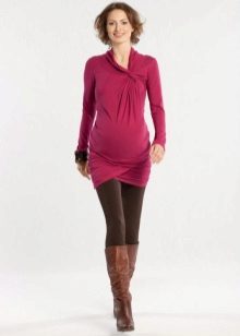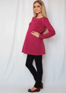 For the cold season it is worth choosing a warm model. For such tunics use dense fabrics - cloth or wool. The winter model will help the future mother to protect herself and the baby from the cold. Such a tunic can be presented in the form of a jumper or a dress.