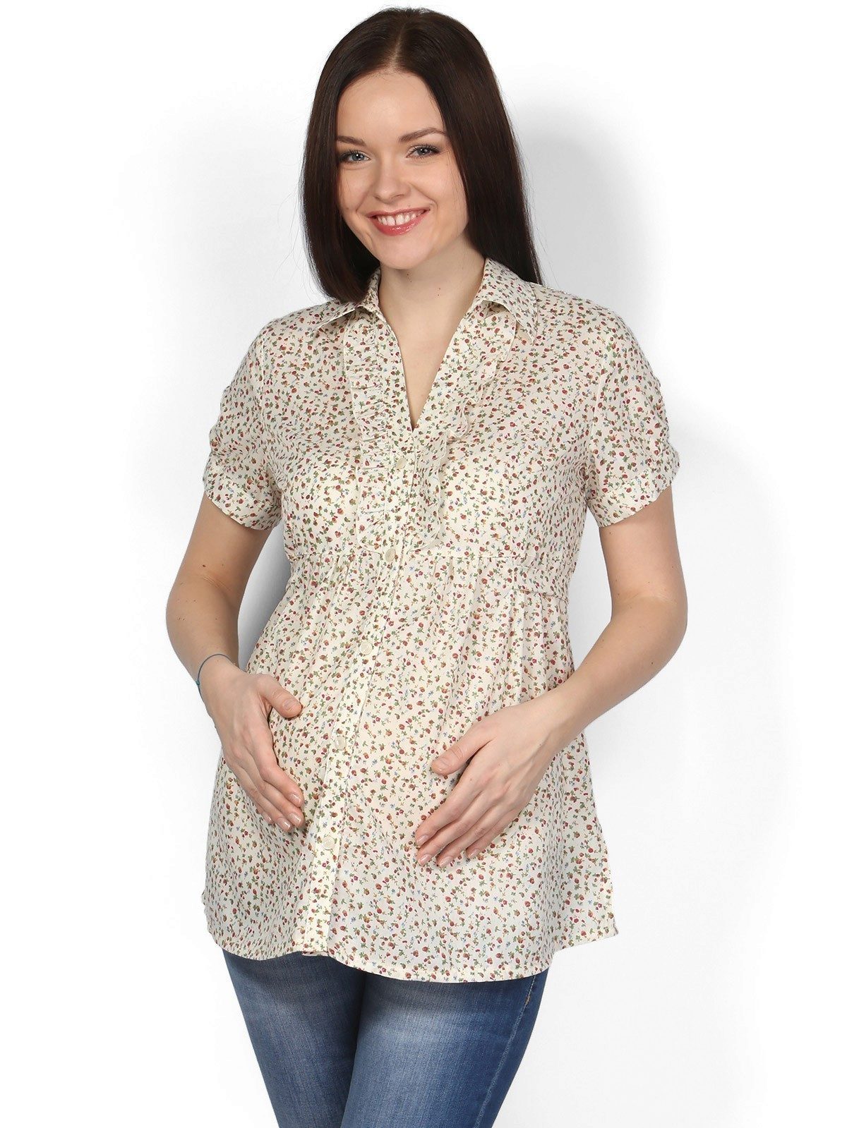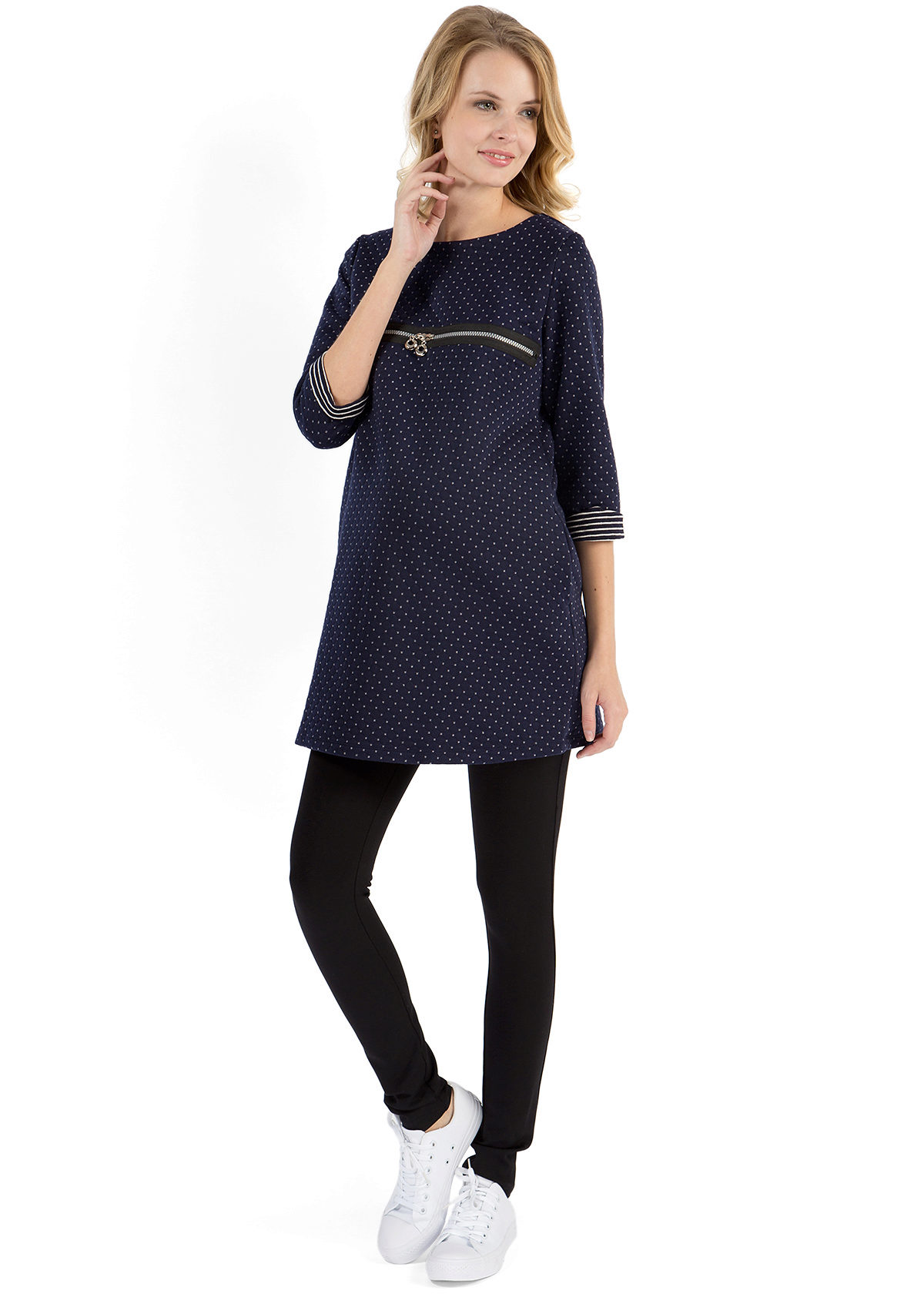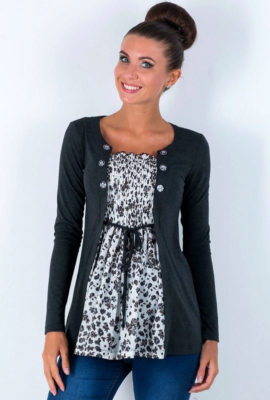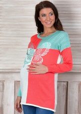 Tunic can be combined with different clothes, allowing future moms to wear exactly what they like. Tunic can be combined with jeans, pants, leggings, shorts or skirt. Elongated models can be used as a dress.
