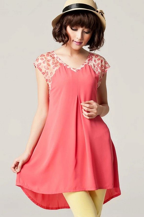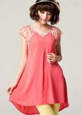Many girls prefer to wear dresses, tunics that have a length below the hips. It can be with or without sleeves, tight-fitting or loose fit. For sewing dresses, tunics use cotton, chiffon, flax, batis or silk due to their light texture.