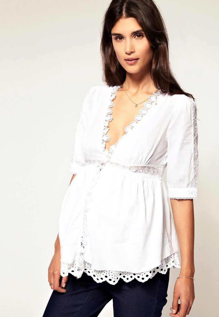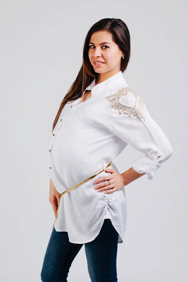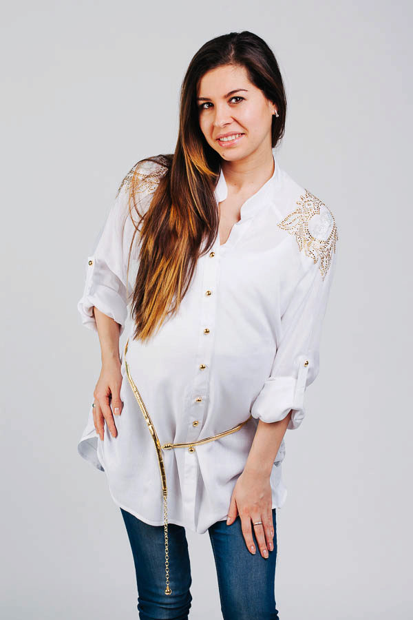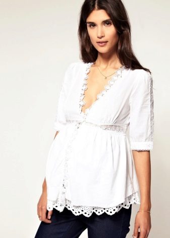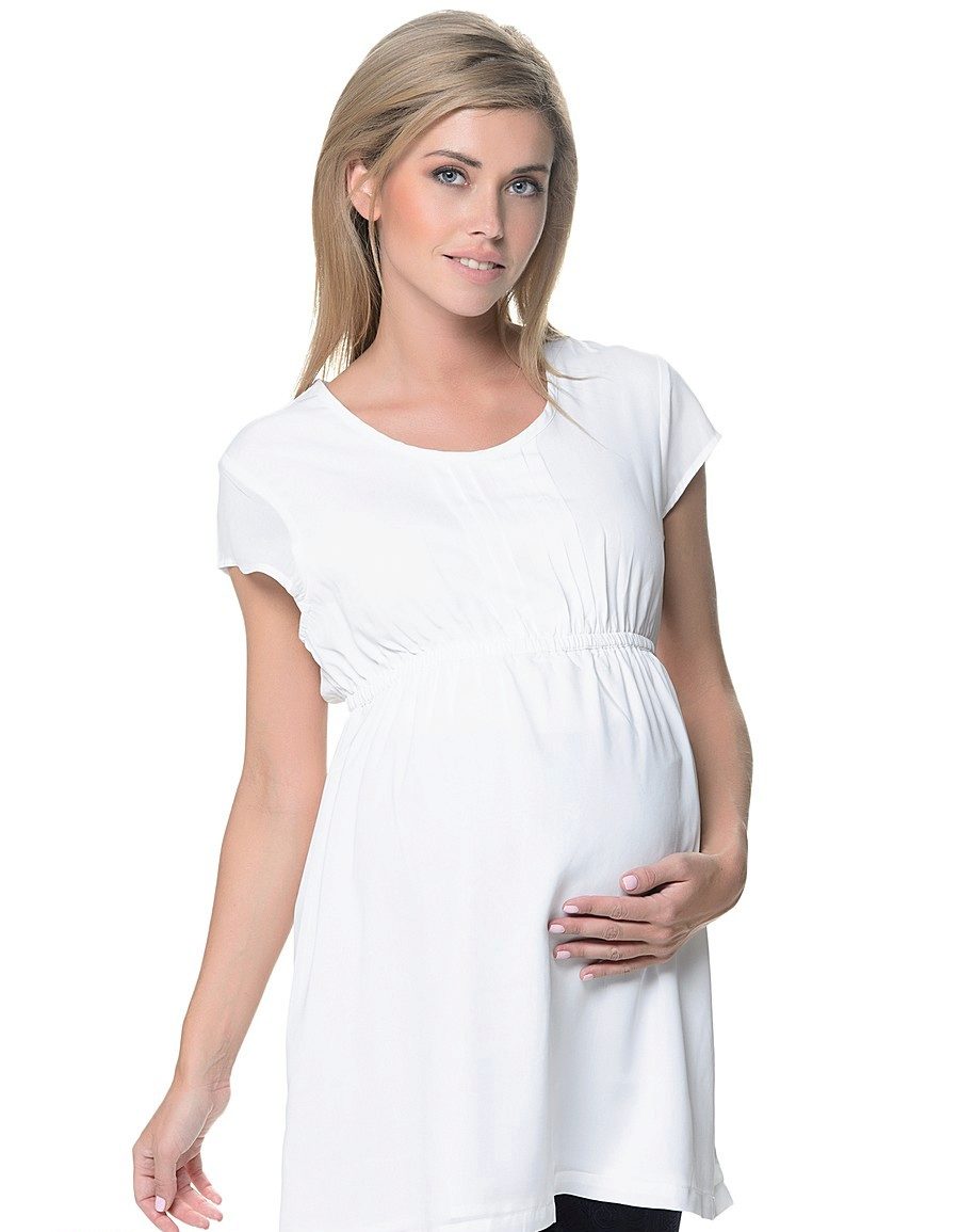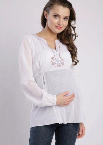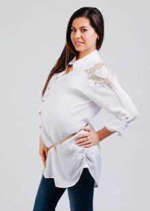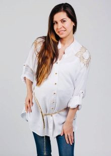 White tunic is an ideal choice for a pregnant woman. From a psychological point of view, this color is soothing and relaxing.