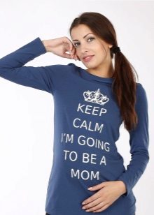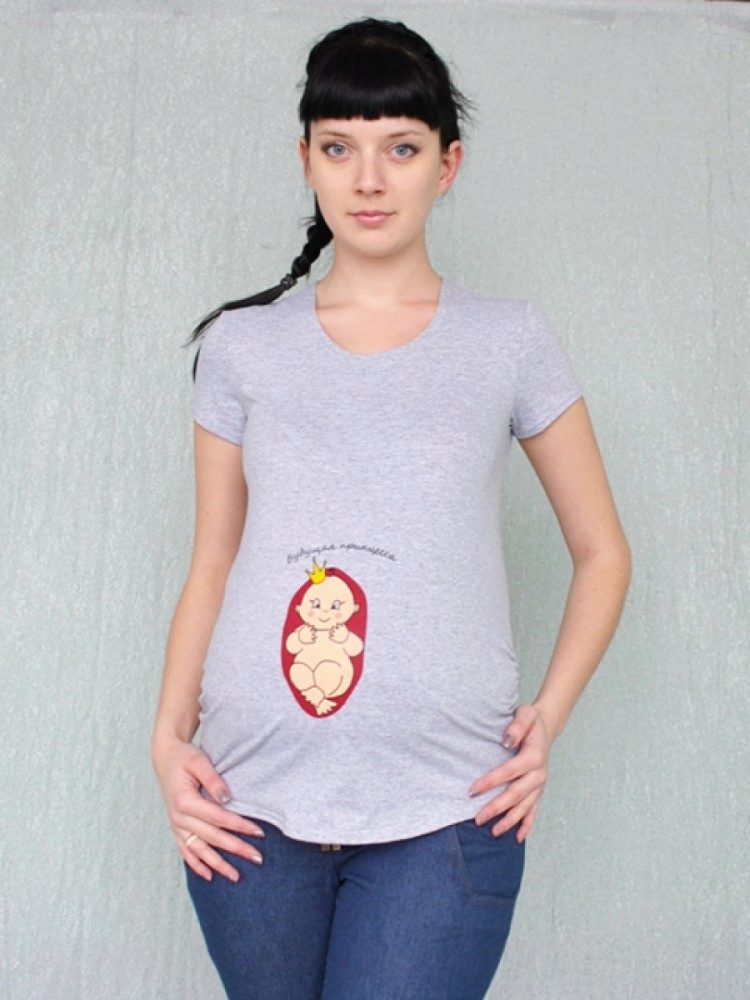 A separate group consists of models with funny inscriptions. In anticipation of a child, girls become quite sentimental. Cheerful inscription with the image of the baby just lift your spirits.