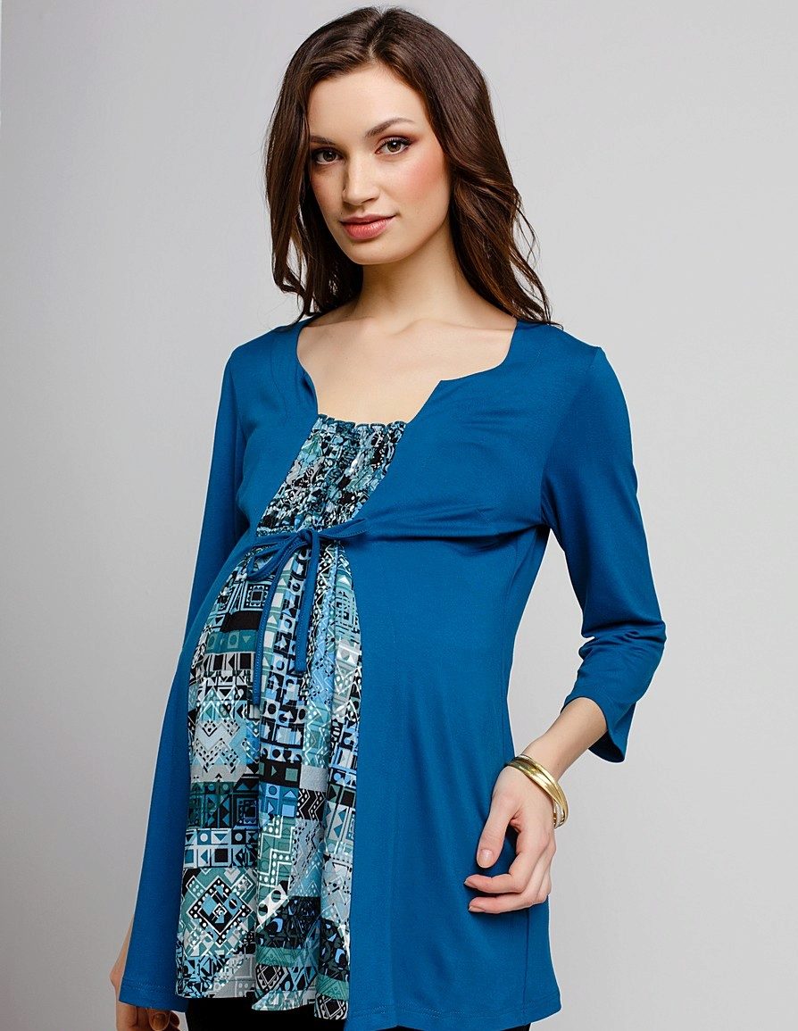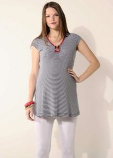 Many models of a tunic for pregnant women are decorated with various decorative elements. Models with embroidery, lace or ribbons will appeal to even the most demanding fashionista. Decorated model will help to give an image of femininity and originality.