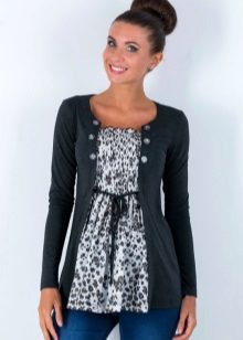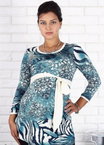 This season in the trend of a tunic of metallic shades. Many designers use animalistic themes. Tunic with a print of an animal looks not only fashionable, but also gives a pregnant girl charm and charm.