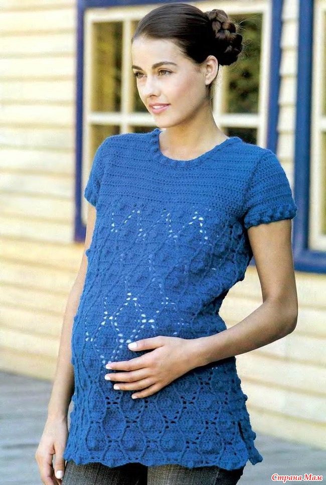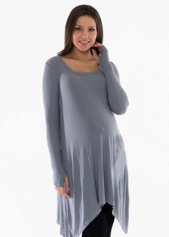 A tunic for pregnant women can be of different lengths: slightly cover the hips or completely close them.