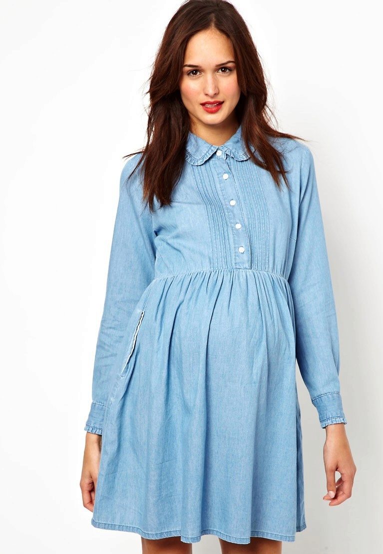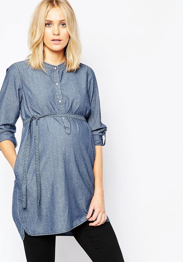 In great demand tunics for pregnant women from denim. Denim models are represented by a free cut. To emphasize an interesting situation, you can add a tunic belt.