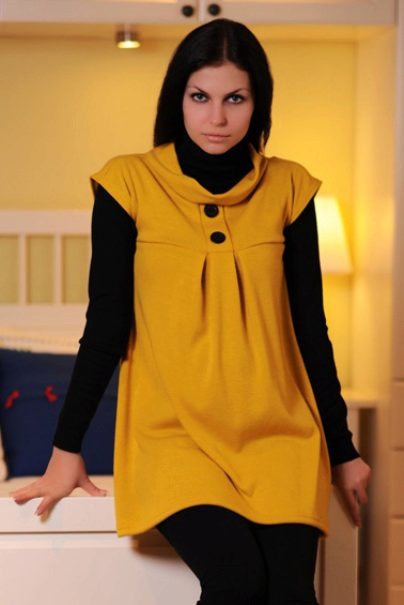 Among the long models, the tunic dress is particularly popular, since it can be worn in tandem with leggings or as a dress. Pregnant women prefer models that fit at the bottom, because they allow you to create fresh and beautiful images.