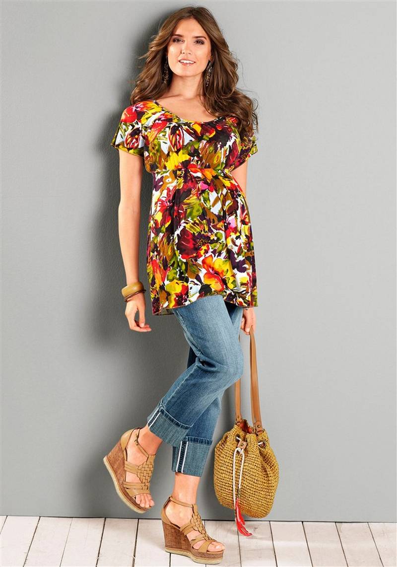 A pregnant woman should always look attractive and beautiful. She should like herself, then her mood and well-being will be excellent. A great solution is a tunic. The main advantages are convenience and freedom. Tunic is a universal element of women's wardrobe, so it can be worn with different things.