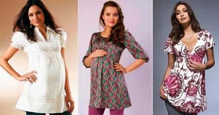 All models of the tunic for pregnant women are different in that they provide freedom of movement, and also do not squeeze the rounded tummy.