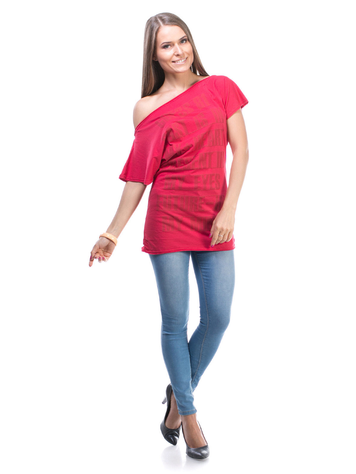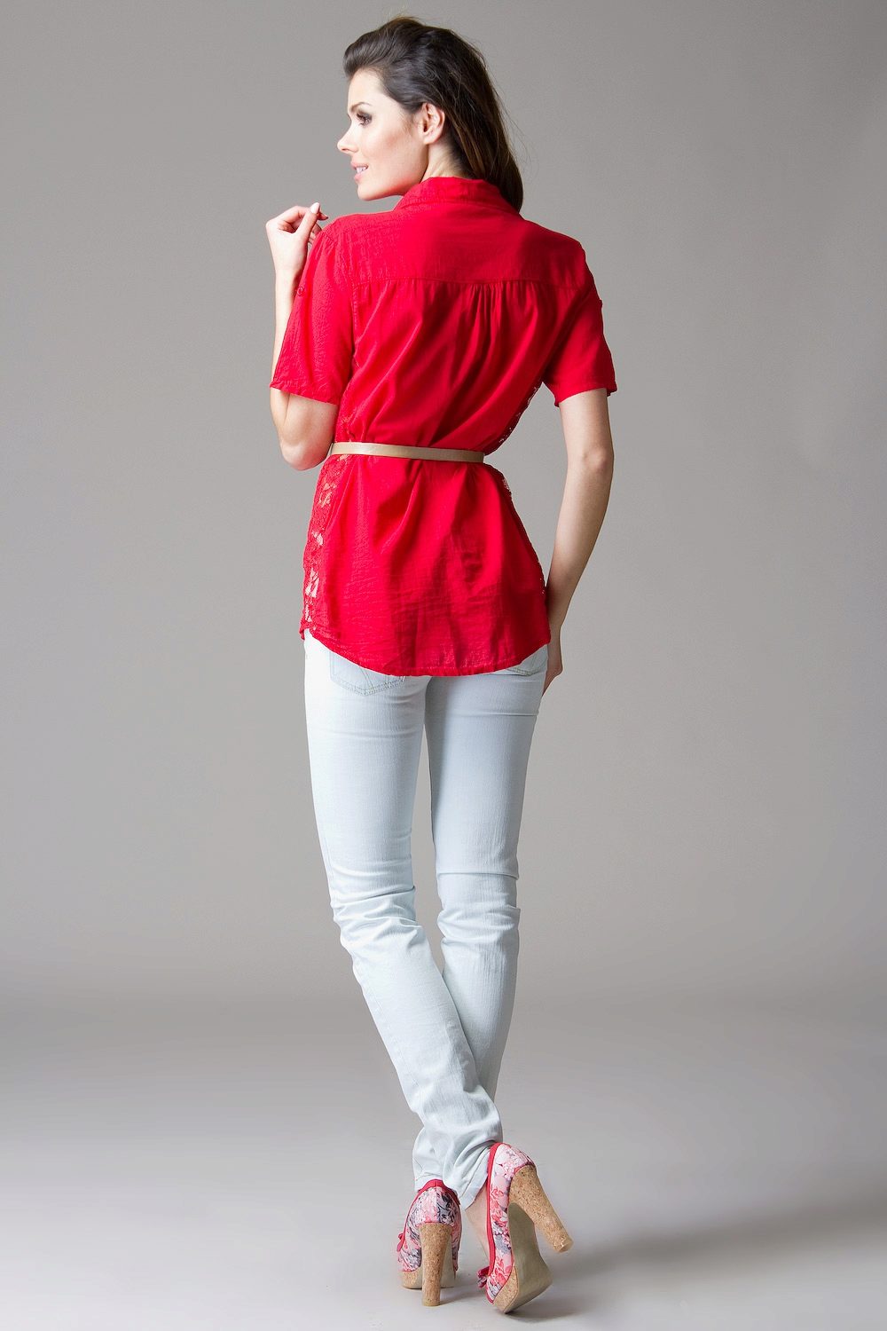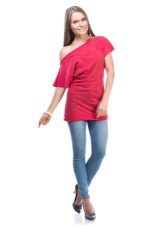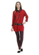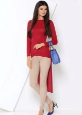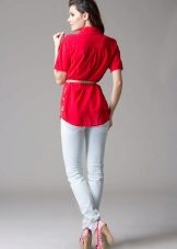 Red tunic - a very bright and noticeable accent in any image. Therefore, in order not to make the image provocative and vulgar, the accompanying clothes should be designed in classic, soft colors, for example, in white, black, steel color.