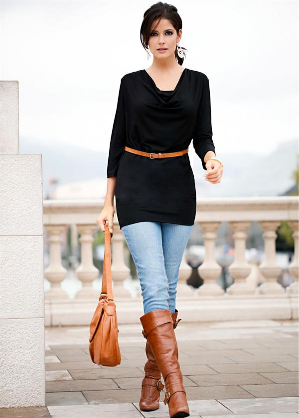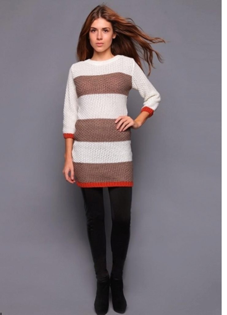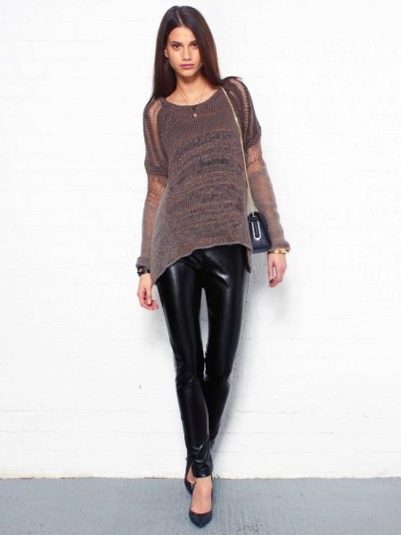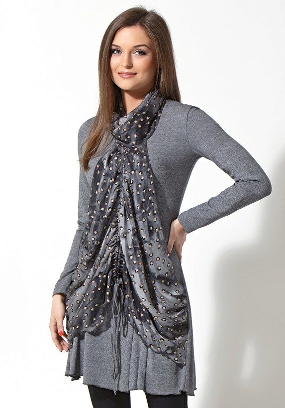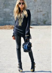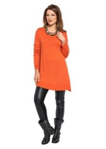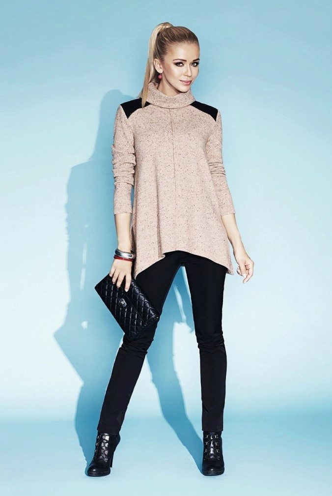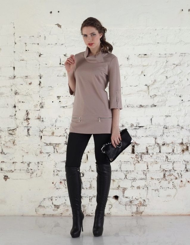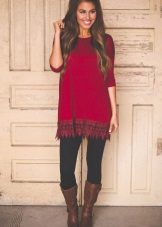 Warm, thick or knitted tunics for the autumn-spring period is best combined with jeans or pants. As shoes you can pick up closed shoes or ankle boots.