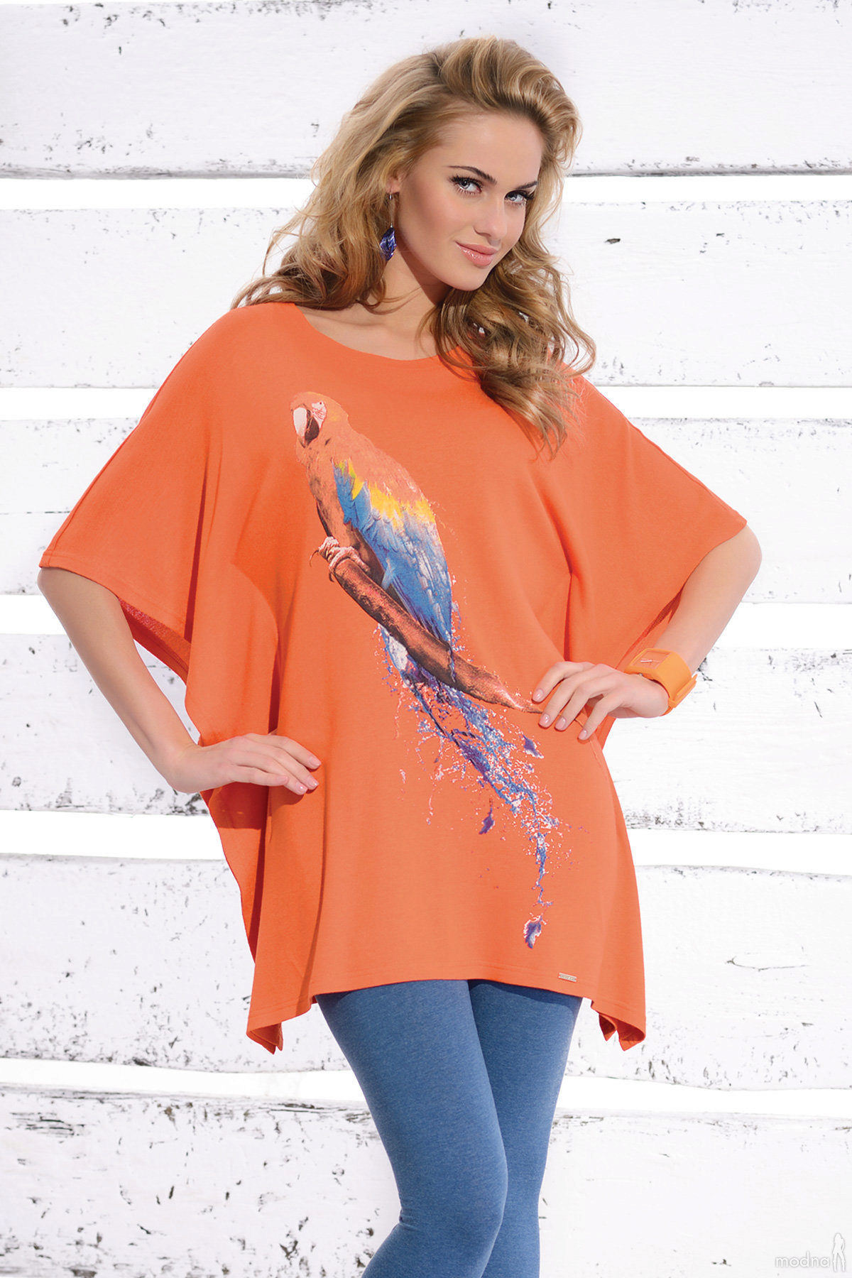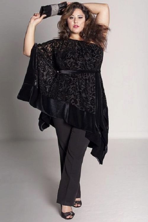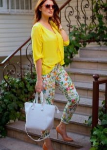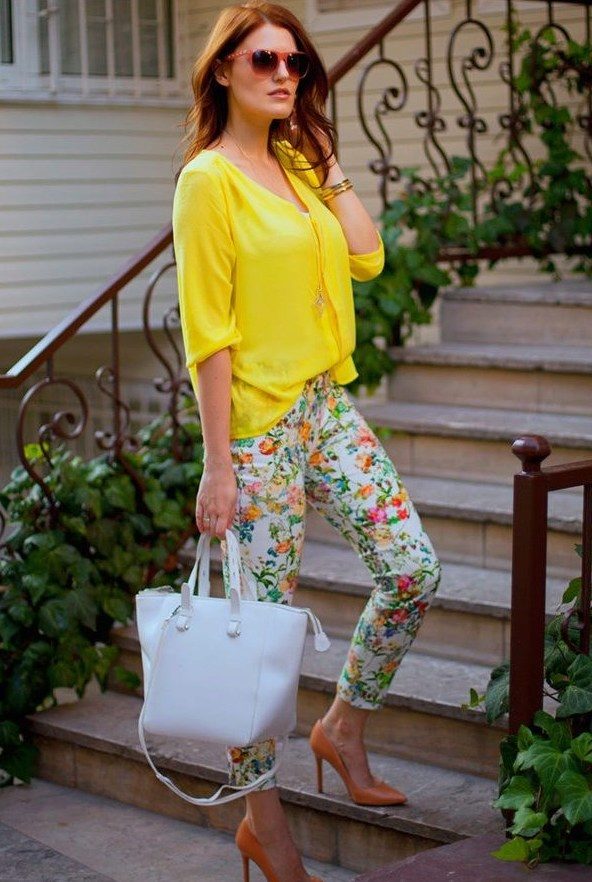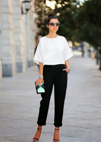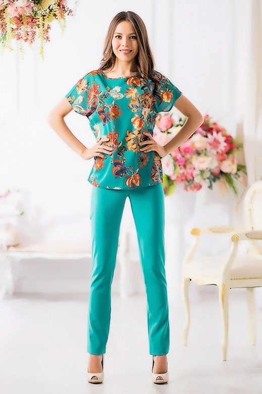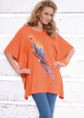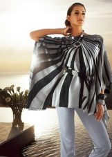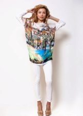 By the tunic bright colors or decorated with a large, catchy print, fit jeans or pants in black or white. When choosing clothes, do not forget the rule of harmony - in one image should not be combined more than 3 colors.