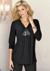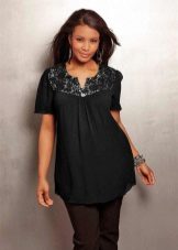 Black tunic is a classic version. It is impossible to make a mistake when choosing the right pair. Pants, skirts, leggings, shorts can be both variegated and monophonic. In the second case, dilute a modest, modest image will help bright jewelry or accessories.