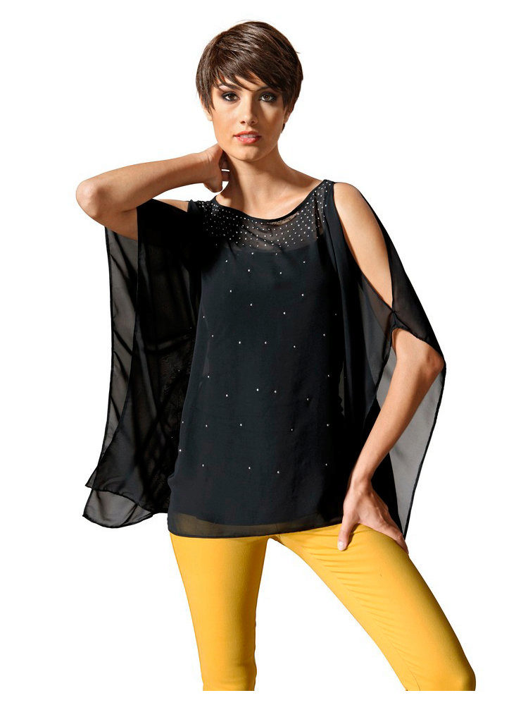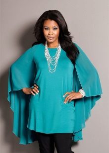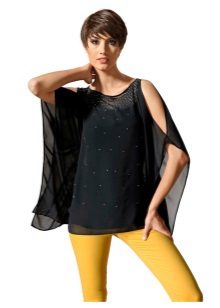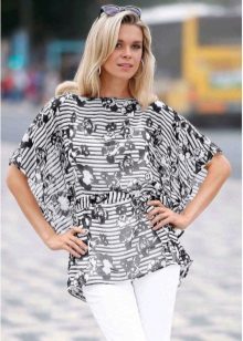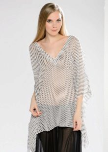 This season is very popular wide chiffon tunics. The design is as simple and concise as possible - outwardly such a tunic looks like a piece of chiffon or other material in the shape of a rectangle or square and a slotted neck.