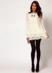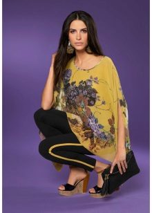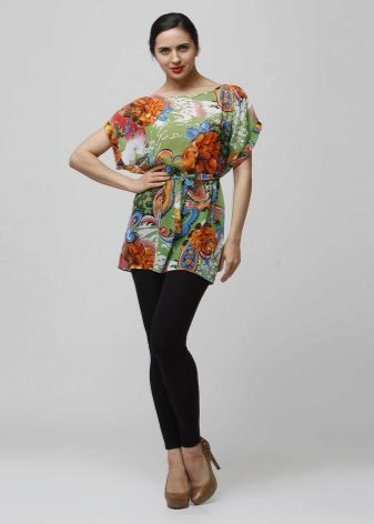 For the creation of less formal and strict images, motley, multi-colored tunics will fit, which look great against the background of dense tights or leggings. To such an ensemble, you can pick up shoes on a flat sole.