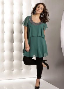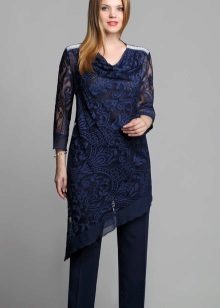 Evening tunic can be elongated, resembling a small evening dress or have an average length. She can be free or adjacent silhouette. Evening models of asymmetrical cut, exposing one shoulder, tunics with a train, are particularly noteworthy.