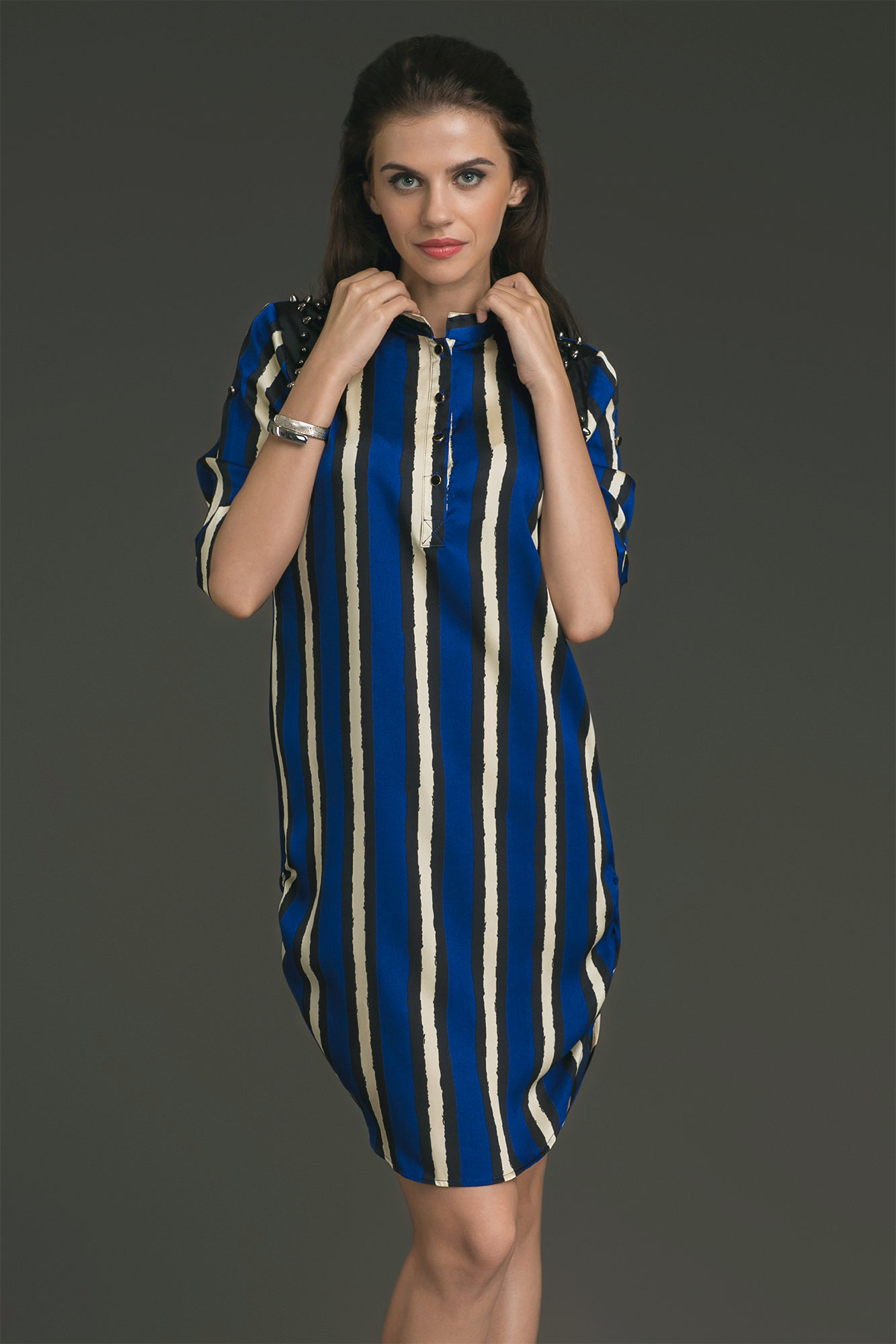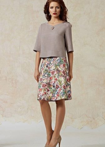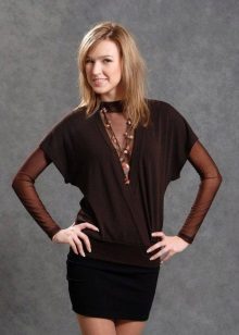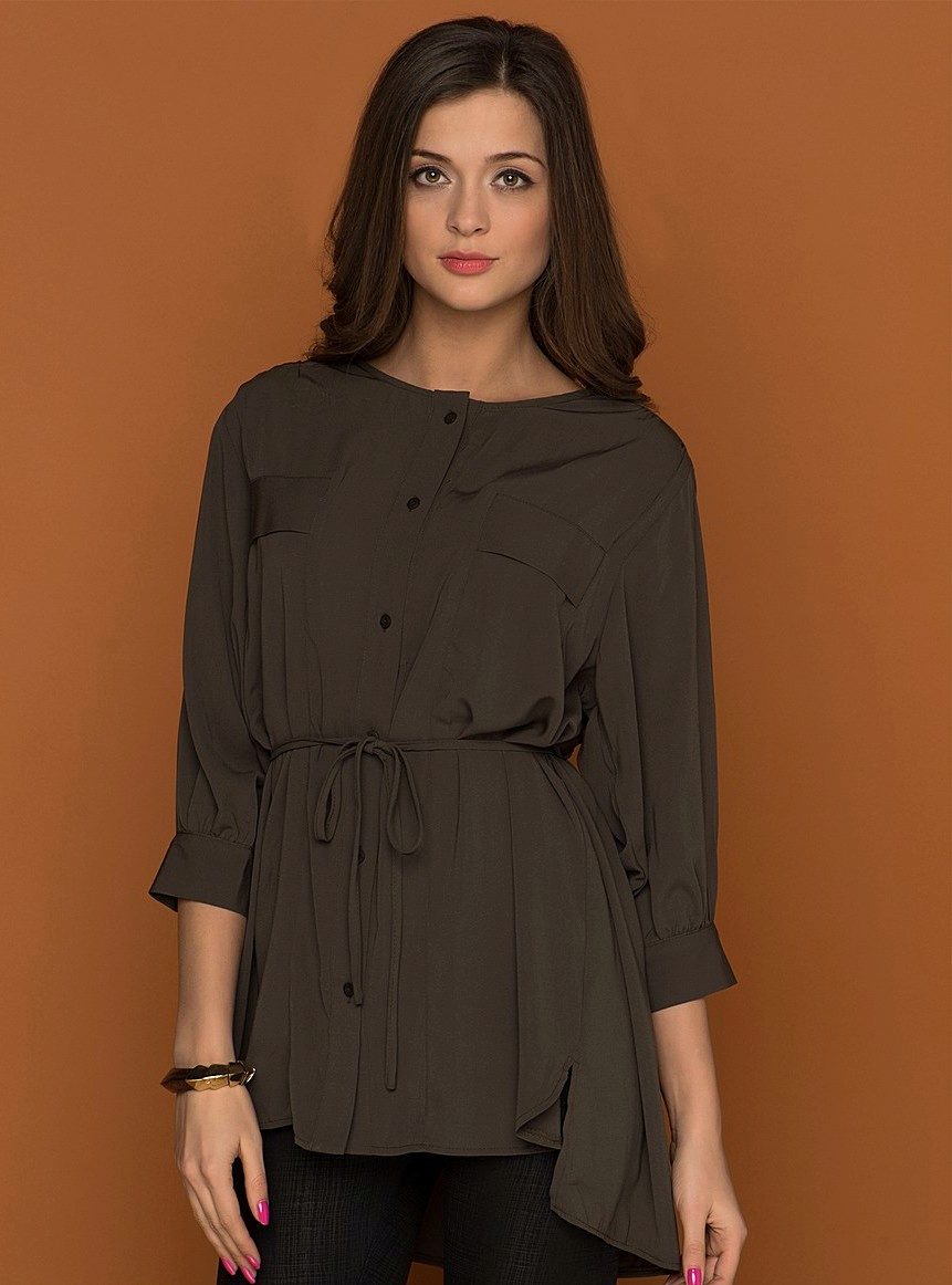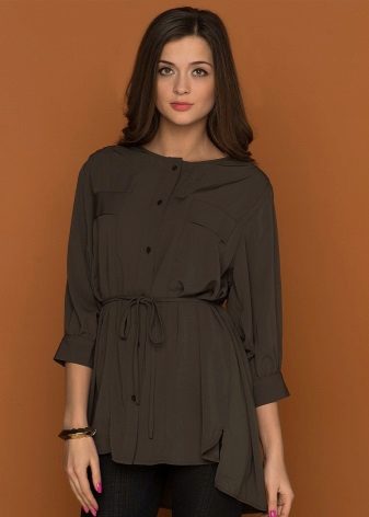 The shortened elegant tunic can quite replace a beautiful blouse. Classic straight pants or a pencil skirt will add a decent look to it.