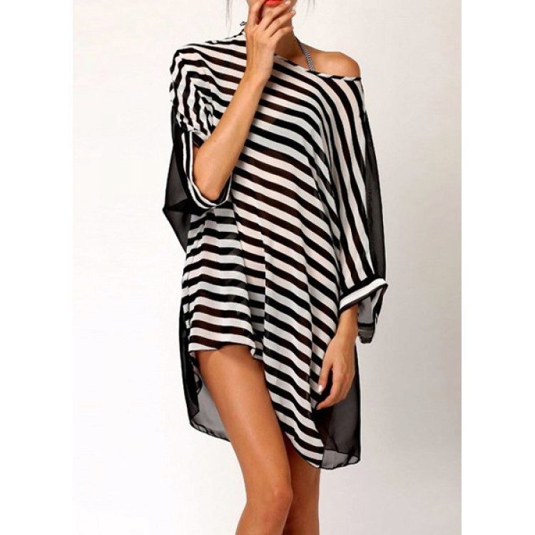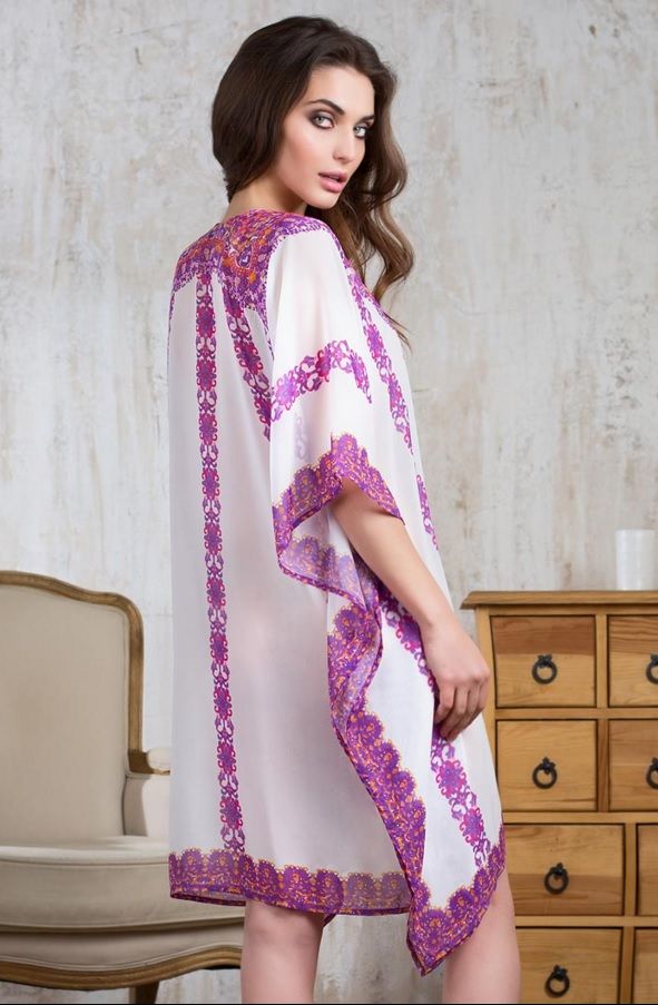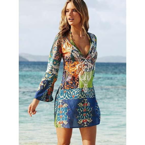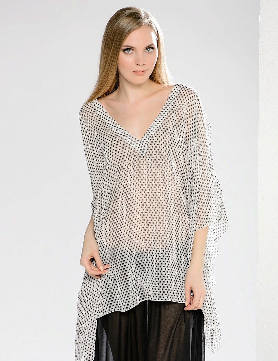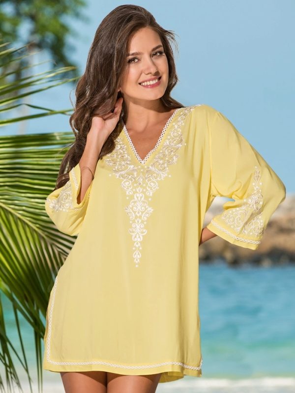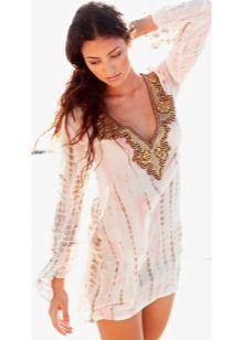 Beach tunics can be performed a little contiguous or loose fit. Often models are decorated with deep cuts and high slits on the sides. Lightweight, thin, flowing fabrics - chiffon, silk, cotton, etc. are used for tailoring of elegant beach tunics.