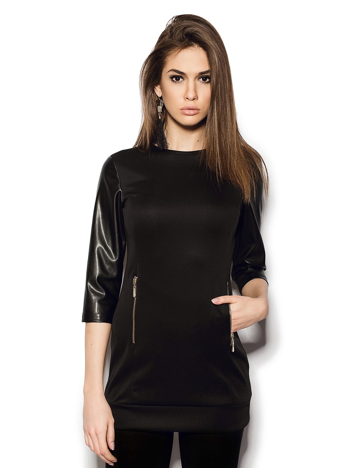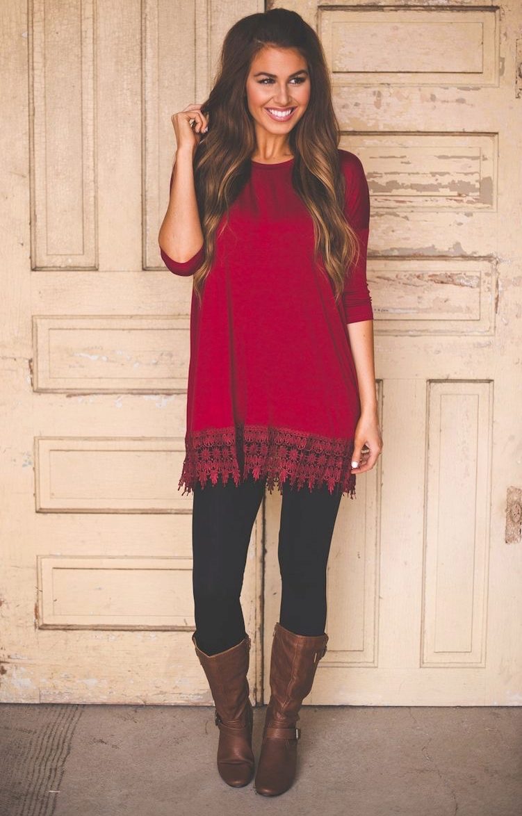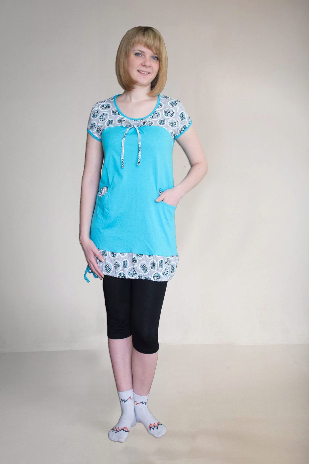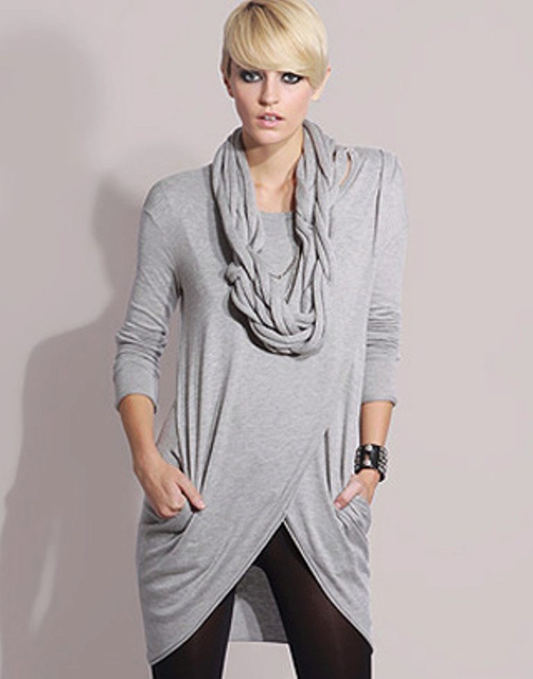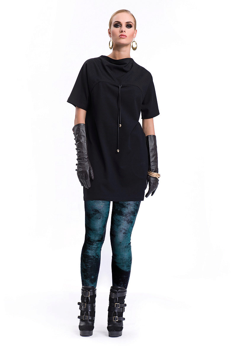 Tunics up to mid-thigh and below can be worn in combination with trousers, leggings, skirts, jeans or as independent clothing.
