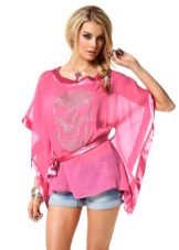 As the evening option looks great tunic made of transparent pink silk, shiny satin or chiffon. The creation of such a bold image must be approached especially carefully so that the outfit does not turn out to be vulgar.
