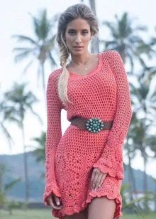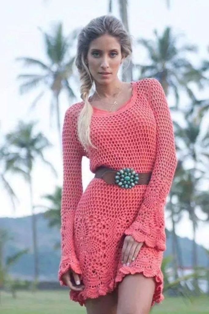A bright knitted tunic is a great option for everyday life. Knitting can be large, thick, embossed or light, openwork. Particularly relevant tunic mesh or model, made in large knitting.