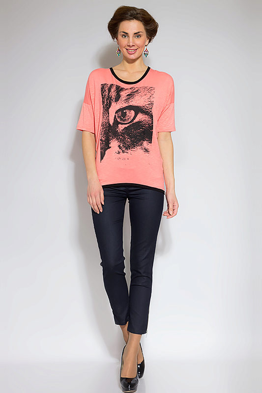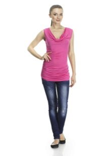 For a pink tunic T-shirt or a straight, concise cut, ideal jeans, shorts, bicycles, sweatpants, leggings, breeches, etc. This image is best suited for shoes with a flat sole - sneakers, sneakers, ballet flats, moccasins, and in some cases heels will look stylish.