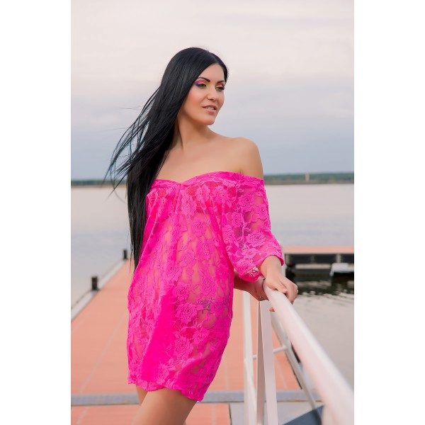 A bright pink tunic is a great option for a tracksuit, beach, home wear, creating a youth look, etc.
