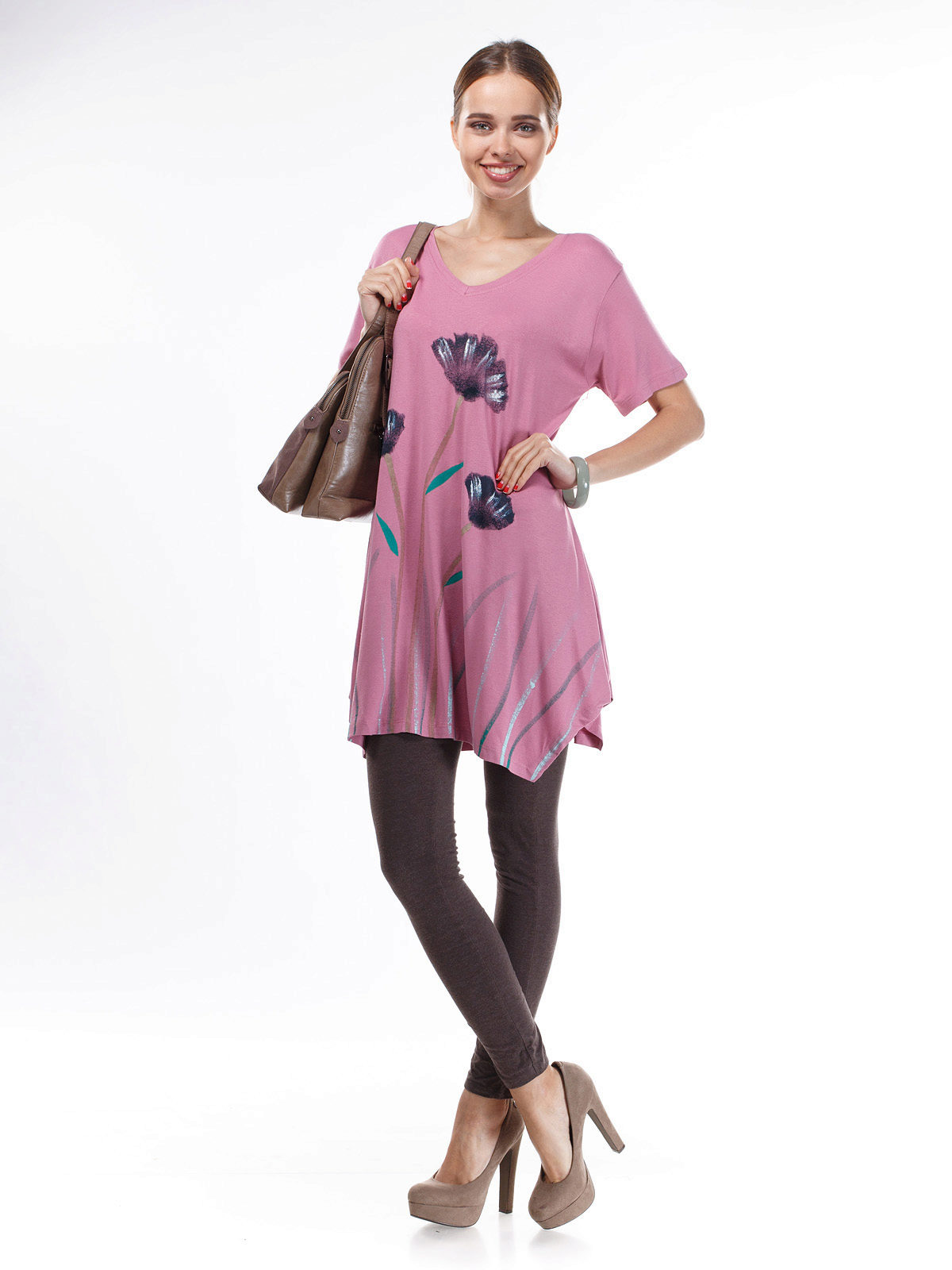 Tunic, made in light, delicate pink tones is ideal for fair-skinned girls. More saturated, bright colors, close to the crimson color go brunettes.