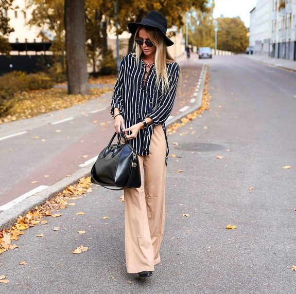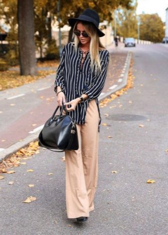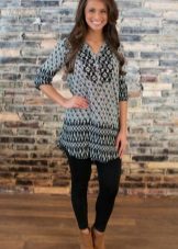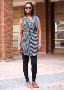 Minimalism in color should be followed in the case of striped or leopard tunics. It is better to choose a single-color item in the kit, however, in the case of stripes, it does not have to be dark, both bright and bright shades will do.