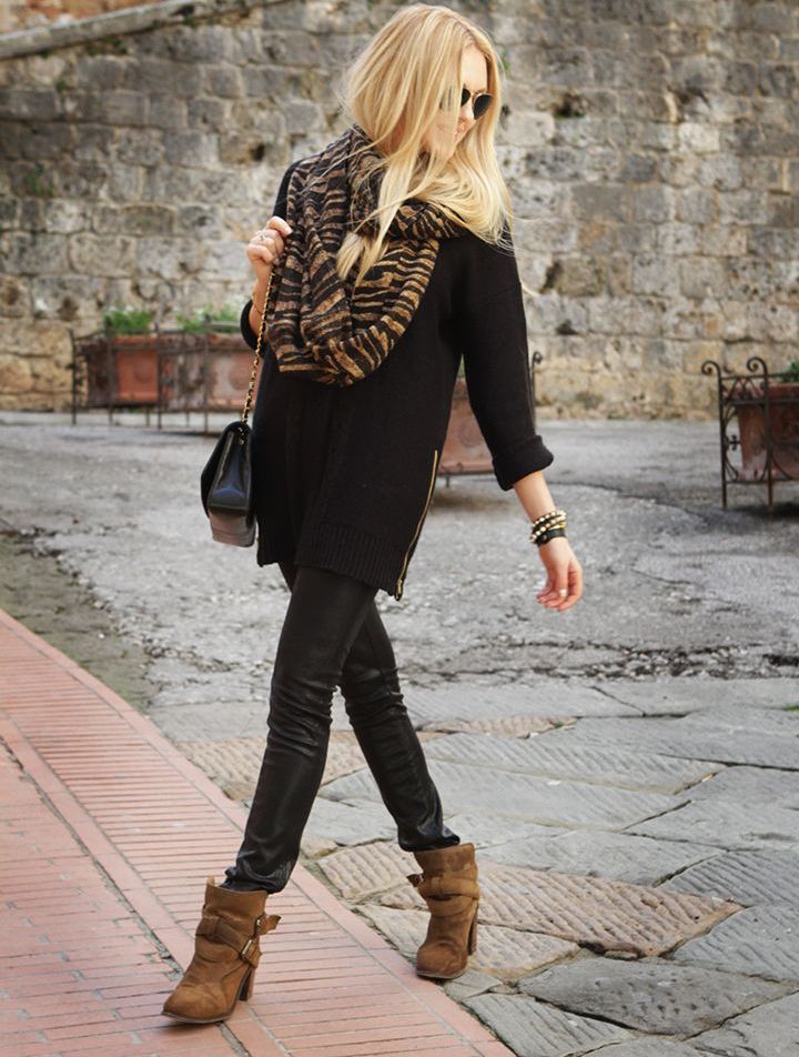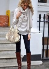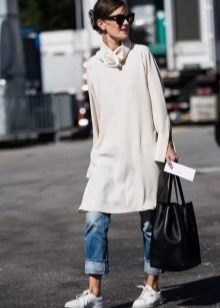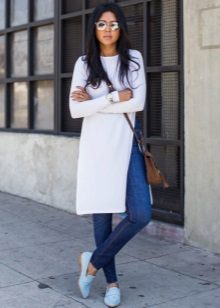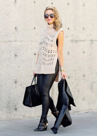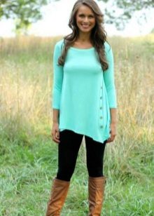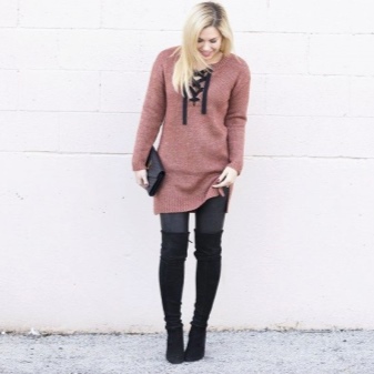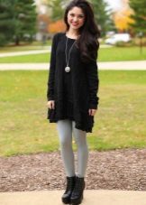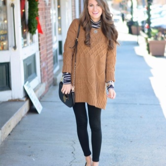 Both knit leggings and close-fitting jeans are suitable for knitted tunics. For long products it is better to choose low shoes, but shorter ones can be safely worn with high boots.
