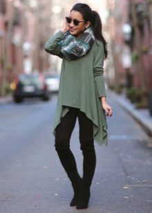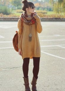 The next popular option is a tunic dress. Worn as a separate item, so you need to pick up to her only shoes, accessories and outerwear.