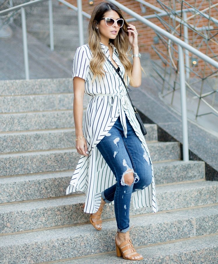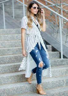 Long tunic with spectacular cuts is the trend of this season. Feel free to combine it with jeans or short pants, boots with heels or flat sneakers.