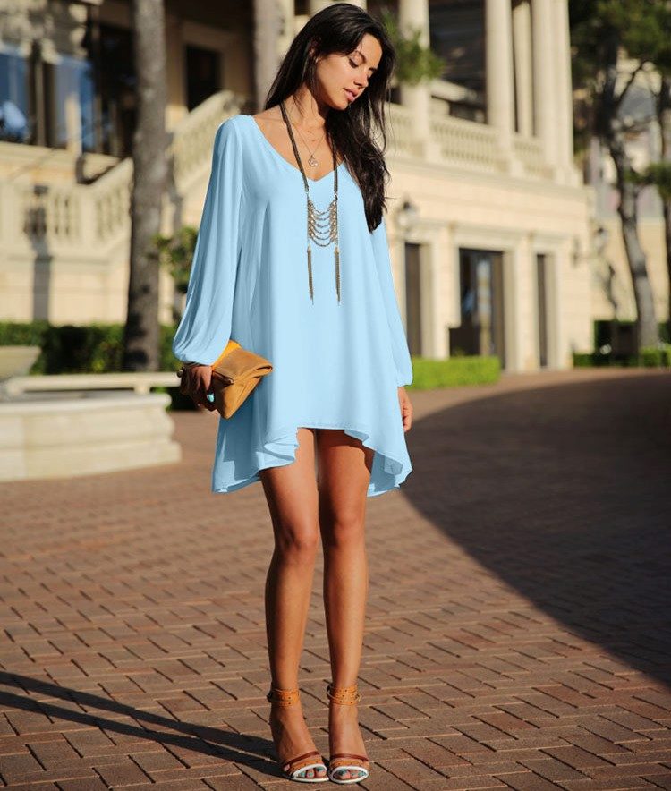 Some of the tunics can be a dress for the evening - for going to dinner or to the bar. It is necessary to complement the image with accessories, such as beads, bracelets or earrings, choose shoes with heels to look elegant.