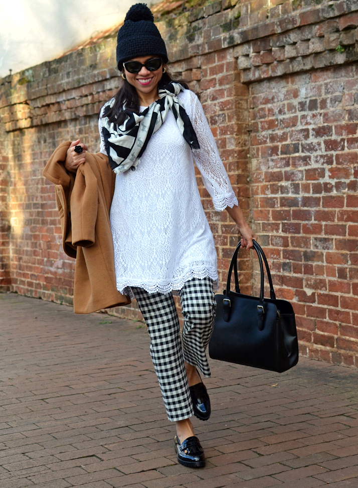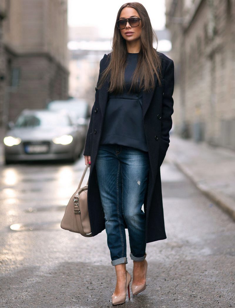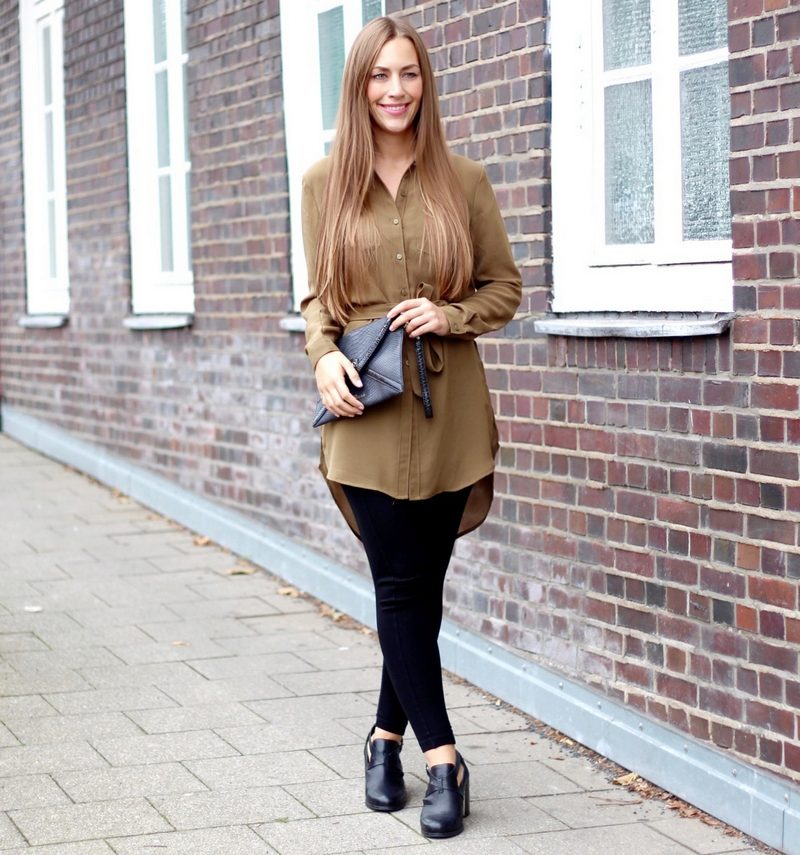 When choosing outerwear, consider the length of a tunic shirt or blouse. It is better if it is shorter, and if you even look out from under a jacket or coat, then no more than a few centimeters.
