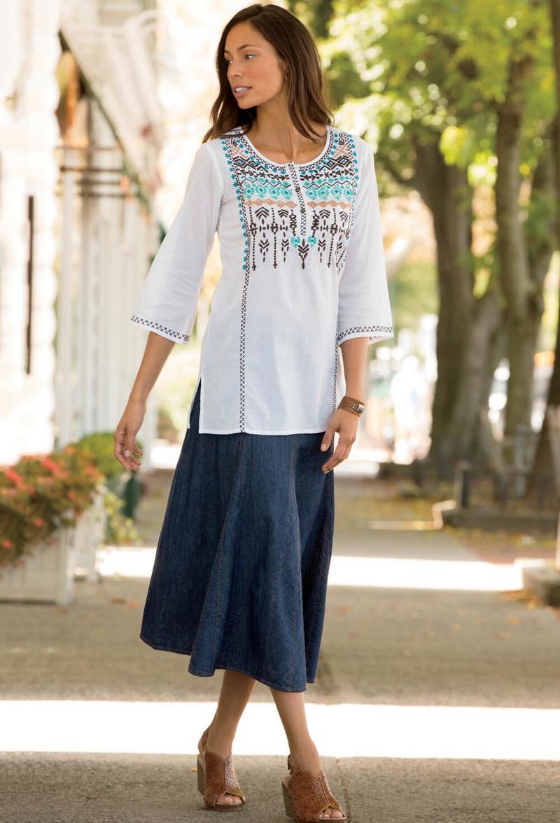 Silk and chiffon tunics will be a great summer or evening option, and you can wear them with a tight skirt or shorts. In the cool, feel free to wear a turtleneck under your tunic, and a well-chosen shirt - both on top and under it.