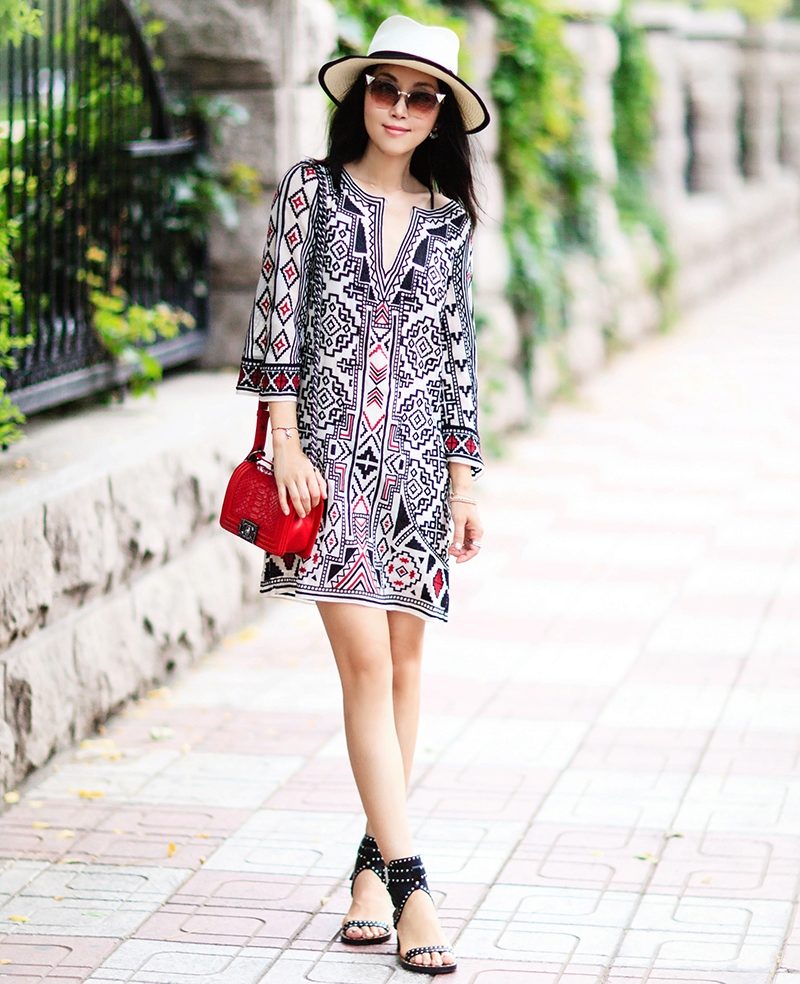 In this style, the main shoes: coarse boots, boots, boots, combined with non-classical jeans and loose pants. Ethno - tunics with different national motifs, combined with neutral monotonous jeans, pants, shorts, but accessories can be in the same ethnic style.