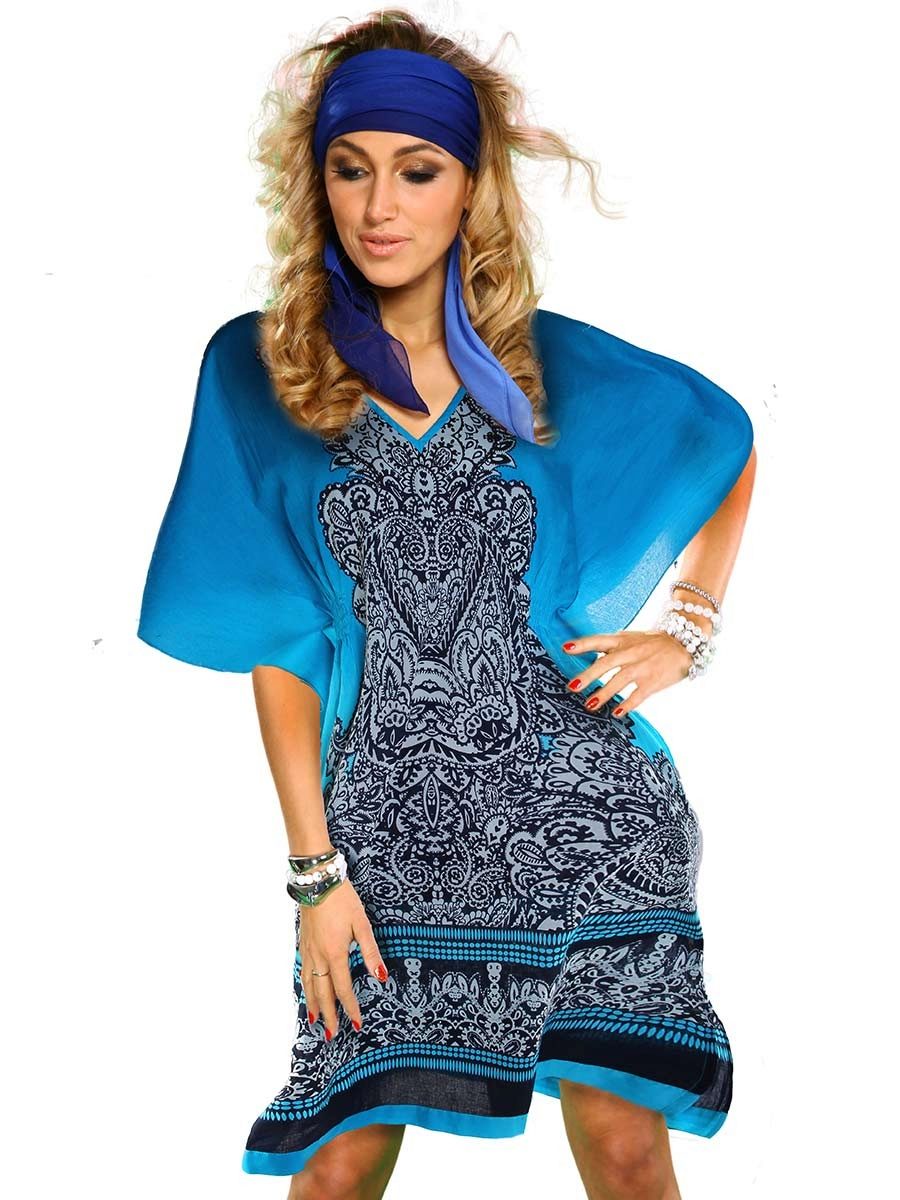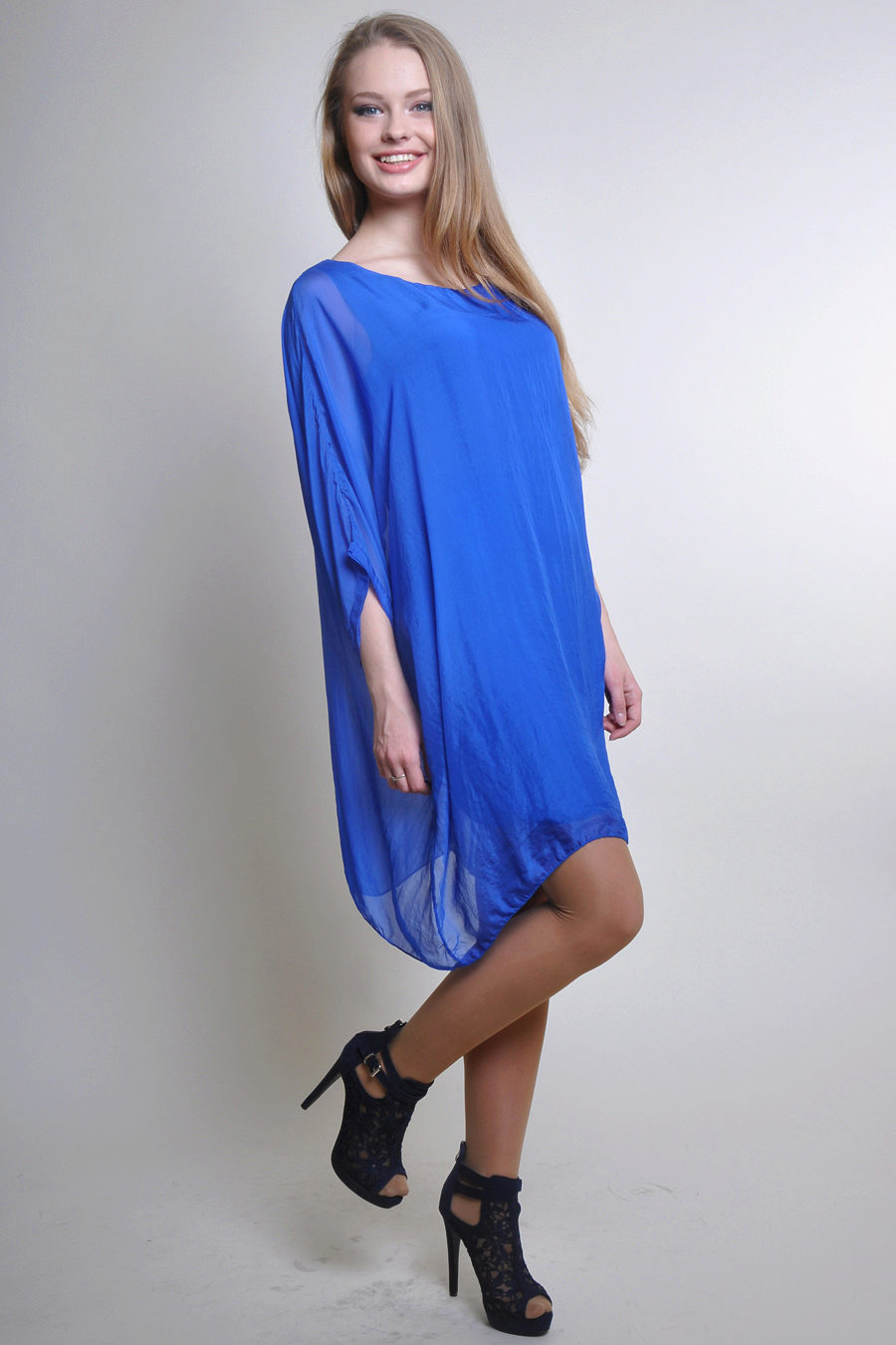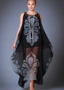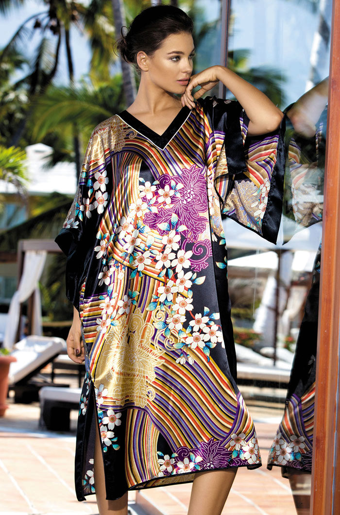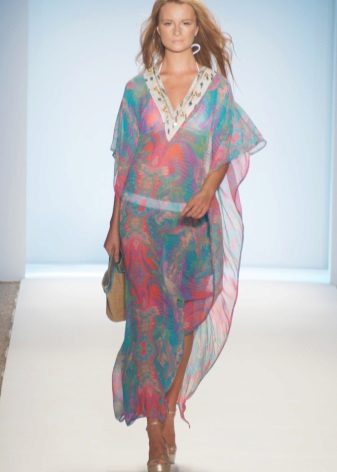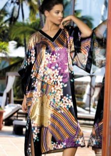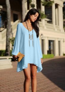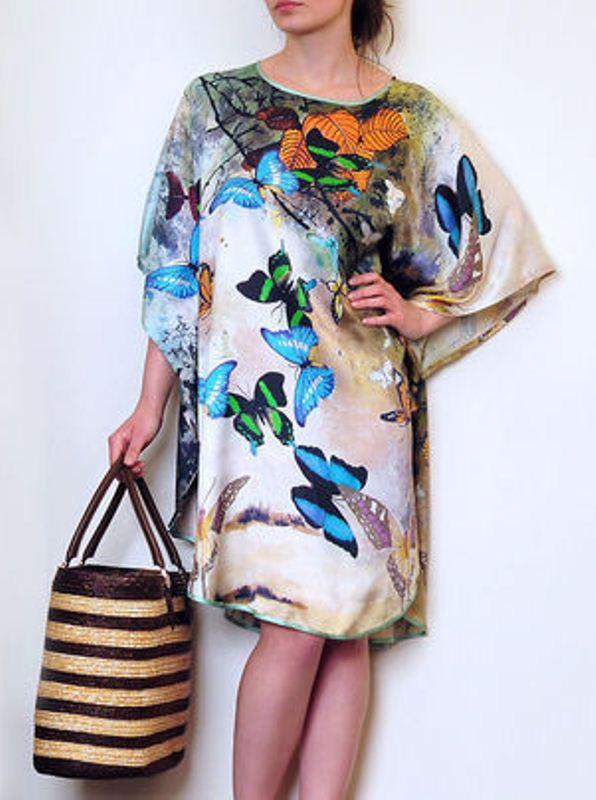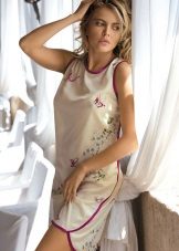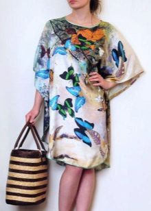 Silk tunic-dress - for summer days. In it you can go to the beach or just walk around the city. Combined with sandals or sandals on a high platform.