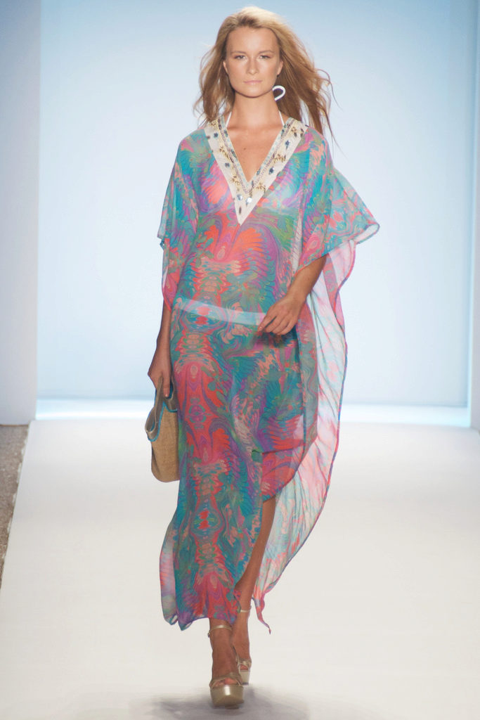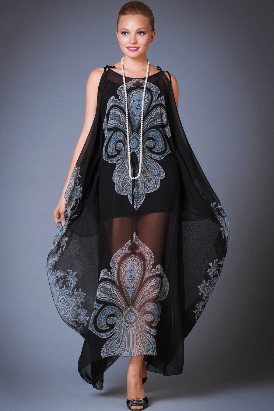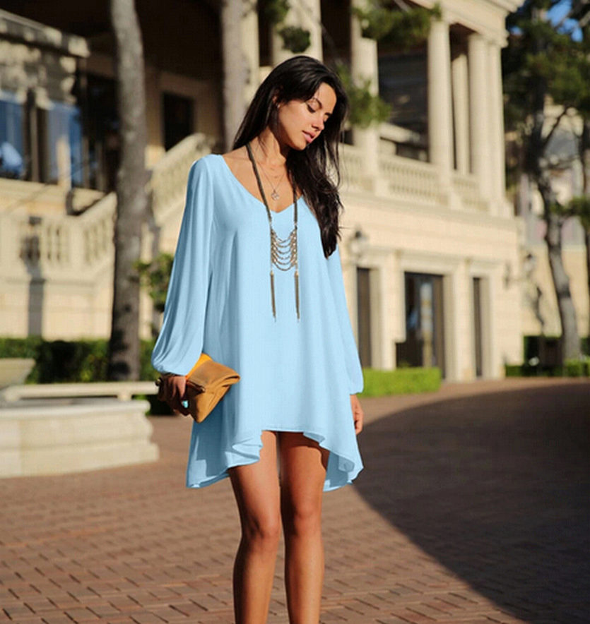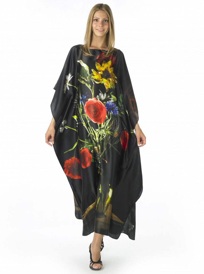 Silk tunic-dress - for summer days. In it you can go to the beach or just walk around the city. Combined with sandals or sandals on a high platform.