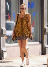 - Tunic instead of a dress. In this case, the length of the tunic tend to the line of the knee. Of course, such tunics-dresses are not suitable for working days, but here for an evening event or a walk is quite a good option.