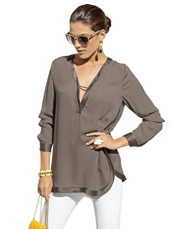 Silk tunics firmly settled in our wardrobes. The historical origins of this thing takes in ancient Rome and Greece. In those days, the tunic was a casual shirt. Today, the tunic is luxurious clothing that emphasizes the femininity and beauty of girls.