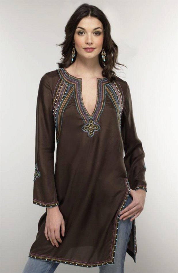 A straight tunic is suitable for everyone, without exception; it is good because it hides possible body imbalances.
