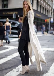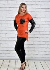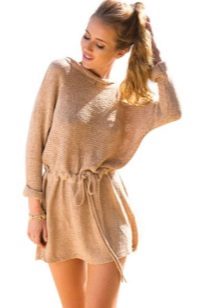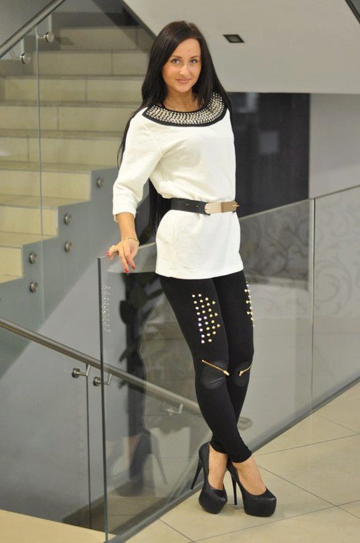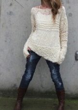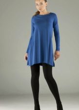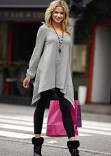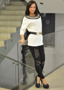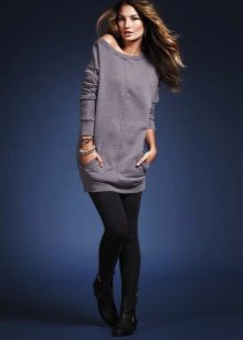 Best of all, leggings, skinny skinny jeans and tight-fitting elastic trousers are suitable for a knitted tunic. In summer, cotton leggings of any length will ideally go to the laced product. For young and slender young ladies a great combination would be mini-skirts and short shorts. In this combination, the bottom garment should be barely visible from under the tunic.